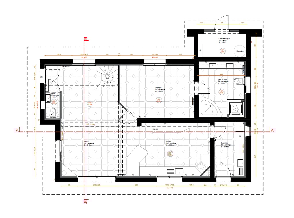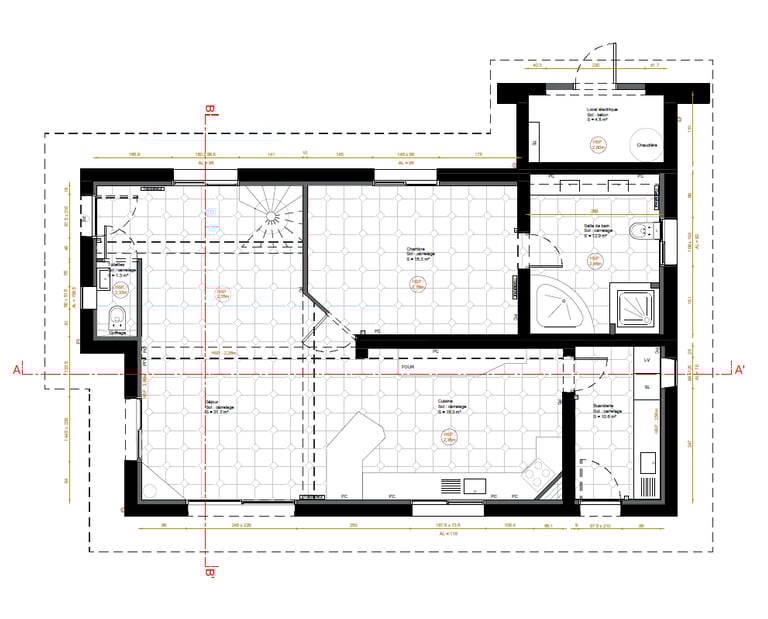 Réalisation de dossiers techniques (Plan électricité, plomberie, sol, menuiserie, etc...) et coordination avec les artisans.